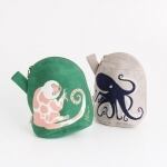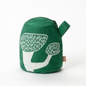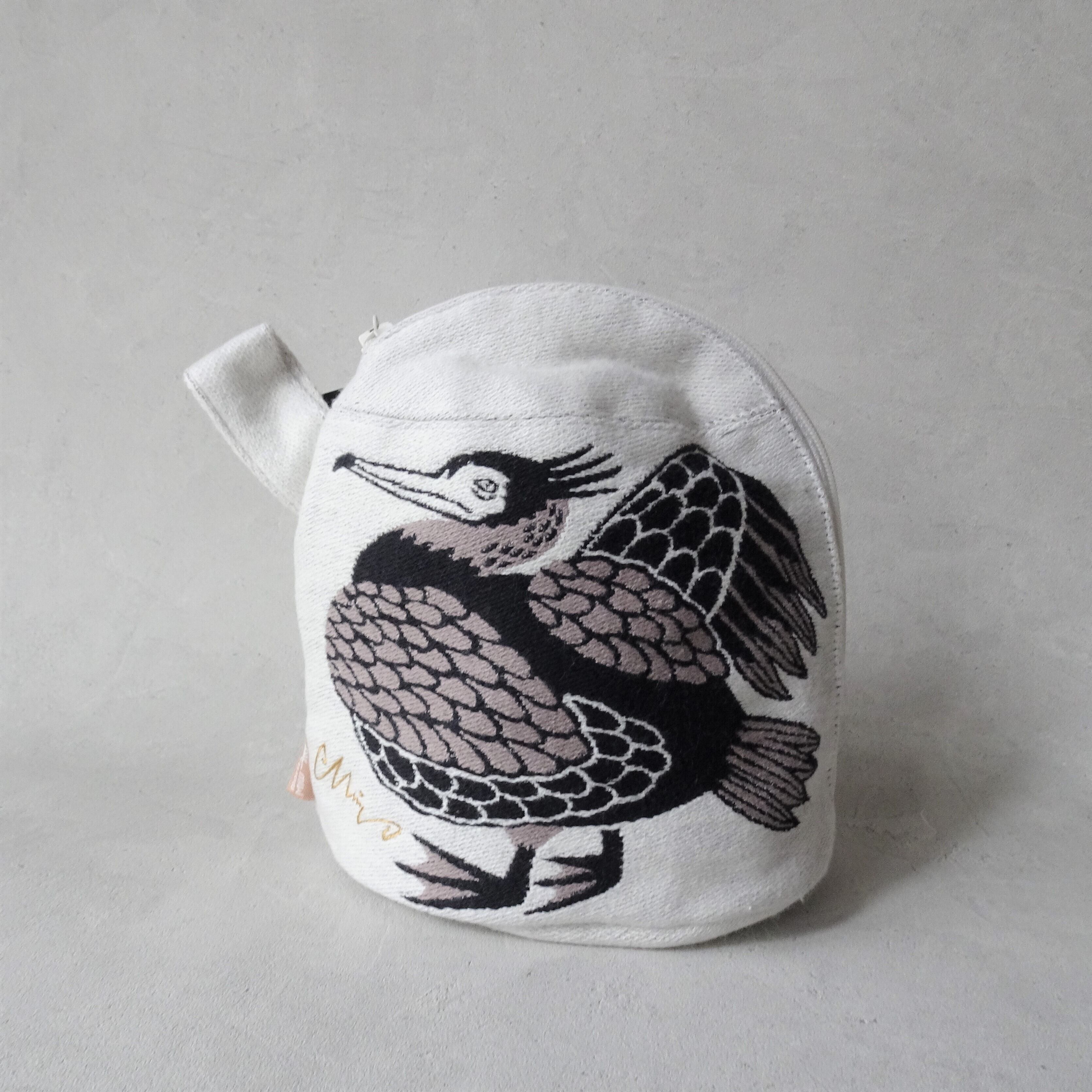 MiWさんの不思議な絵の世界を映しだすトートバッグと同じ柄のちっちゃくてコロリンとした愛おしいカタチのマチつきポーチ。