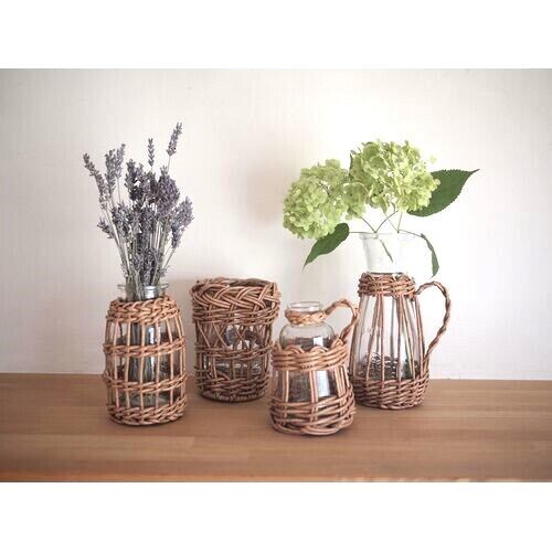 本物の柳に近い風合いのフェイク素材を使用した花器、置くだけでおうちが雑貨店のようなおしゃれ空間の演出に。